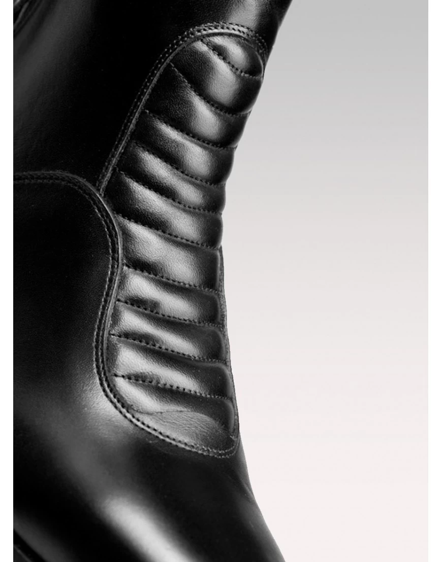 Tucci Harley lederen rijlaarzen met gewatteerd detail aan de voorkant, ontwikkeld om te beschermen en extra comfort te bieden. Tucci Harley paardrijlaarzen van italiaans design met een extra sterke elastische band en ritssluiting voor een onberispelijke pasvorm op maat. Franco Tucci rijlaarzen voor topprestaties, duurzaamheid en comfort gemaakt in Italië!
